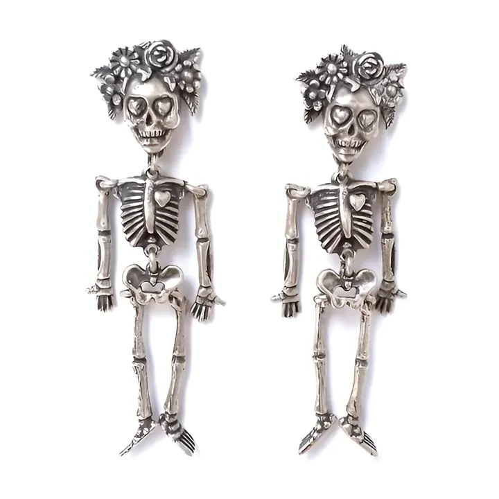骨のパーツ一つ一つの細部にまでこだわったホネホネのカラベラピアス ハードになりがちなモチーフがとてもキュートな仕上がりに
