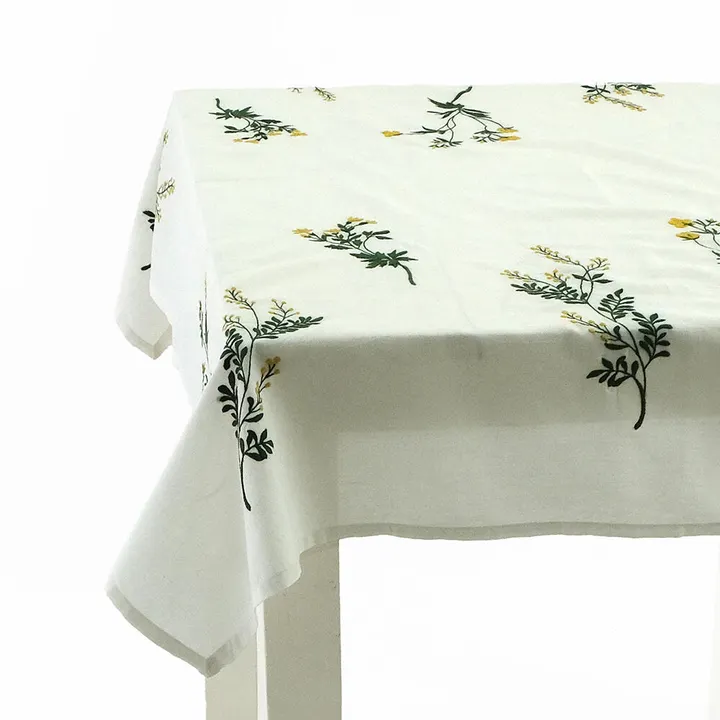 テーブルクロス┃草花が咲き誇る刺繍のテーブルクロス(100×100cm) YL(イエロー)