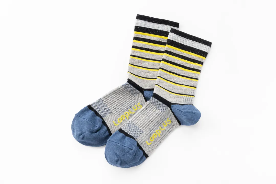 一日中履いてもズレず、しっかりペダリングができる。 アップサイクル糸「Looplus(ループラス)」を使用した自転車ソックスに、カラフルなボーダー柄の新モデルが誕生しました。 「環境に配慮したソックスは良いけれど、グレー一色だと地味に感じる」 「せっかくなら、自転車ライドに映える明るいデザインが欲しい」 そんな声にお応えして生まれたのが、今回のボーダー柄ラインです。カラーバリエーションは6色。愛車のカラーやウェアに合わせて、自由に選べる楽しさがあります。丈はやや長めのミドル丈で、くるぶし丈の自転車スパッツと組み合わせても地肌が見えにくい仕様となっています。 本体に使用している「Looplus(ループラス)」は、繊維製品の製造過程で生まれる端材や編みくずなどを再利用して作られたアップサイクル素材です。クラボウが開発したこの糸は、廃棄されていた素材を新しい糸としてよみがえらせ、資源使用量の削減に貢献します。そのため本体の色はミックス調の風合いとなり、環境配慮型素材ならではの表情が特徴です。 機能面では、自転車ソックス(RING-KOソックス)をベースに、Looplusに最適となる編み設計へ改良。伸縮性の高い編み方を採用し、走行中の足とソックスのズレや回転を防ぎます。つま先と踵にはマイクロファイバーを使用し、グリップ力を向上。また、再帰反射糸を一部に取り入れることで、夜間走行時の視認性にも配慮しています。