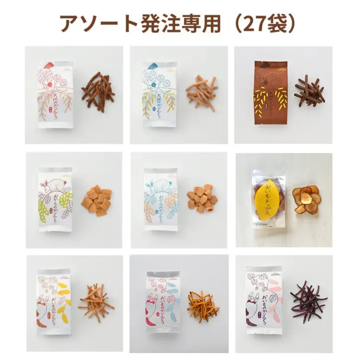 大地のおやつの人気かりんとうシリーズ混載で、27袋になるように選択できます。 出荷の都合上、複数の味の合計が27袋単位(27, 54, 81袋・・・)になるようにご注文ください。 商品ごとに関する詳細は、各商品ページをご参考ください。 〇2026年2月3日より、昨年原料不足により終売いたしました「紫いも」を期間限定で発売再開いたします。 (販売期間目安7月まで) 在庫がなくなり次第、販売終了いたします。
