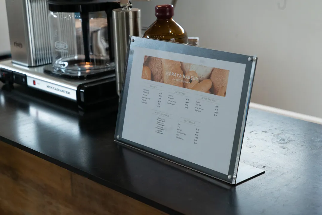 ※A5サイズまで対応 クロカワ鉄を曲げアクリル板にマグネットを埋め込んだ事で、アクリル板を簡単に取り外し出来るL型の卓上ポップスタンドです。 メニュー表やポストカード、フライヤー等、好みに使ってください。 様々な店舗のメニュー表としてもおすすめです。 【店舗什器向けに単体販売もしております。】