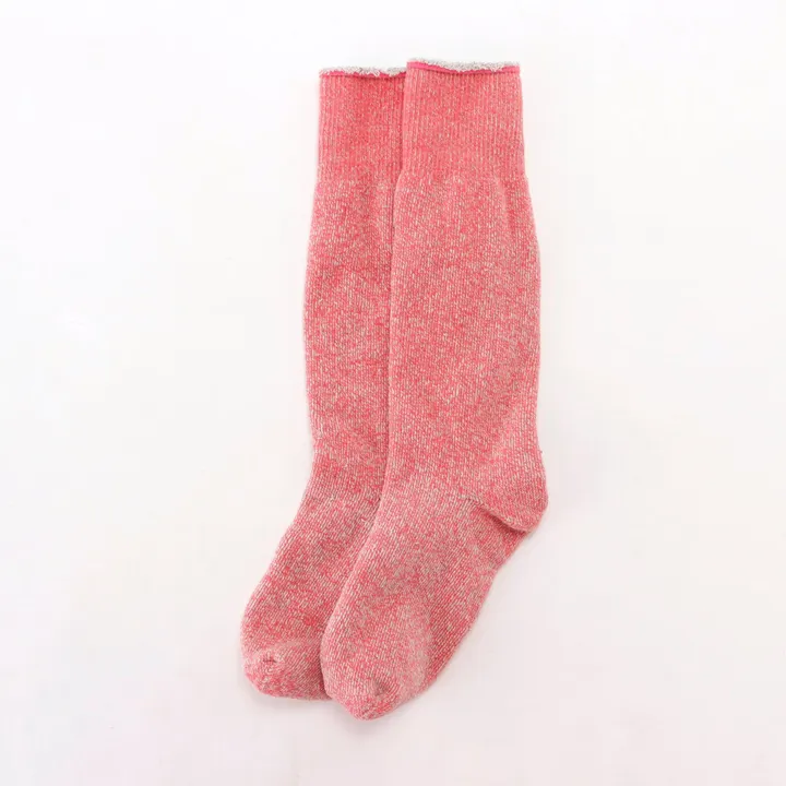 エコというものが取り組みからブームとなってしまった現代、 何が正しいのかを見失いがちになります。 地球にやさしく、お洒落を楽しむ。 足元から見直そうということで、リサイクルコットンを使用したシリーズを作りました。 廃棄される衣料や生産背景に残ってしまった糸や生地を色ごとに集めて、 もう一度ワタにし、新たな糸へ蘇らせています。 その際に一切の水を使用することなく、二酸化炭素の排出も限りなく少ない。 50%RePET, 38%ReCOTTON, 9%POLYESTER, 2%OTHER, 1%POLYURETHANE 日本製
