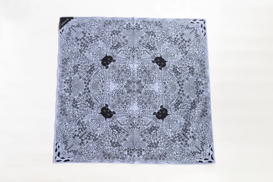 山猫瓶詰研究所のオリジナルハンカチです。 山猫の庭は、山猫が住む和洋折衷の館の庭をイメージしたデザインになっています。 大判サイズで、ハンカチとしてはもちろん、お弁当包みやスカーフ、バッグの目隠しにも活躍してくれます。 《カラー展開》 ・黒 ・赤 ・青 ・紫