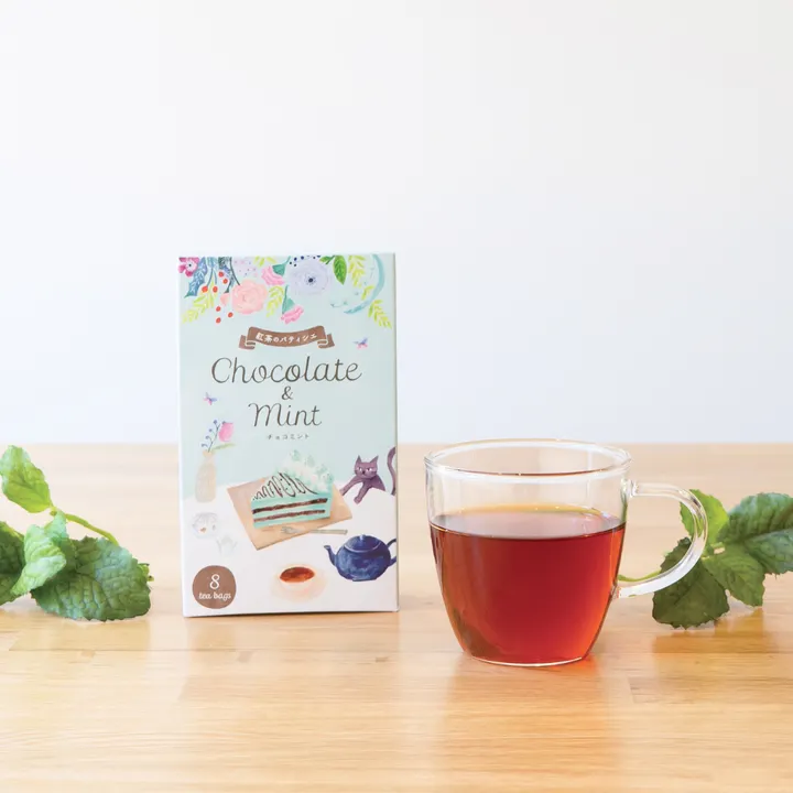 洋菓子をイメージしたフレーバーティーです。 いろんな洋菓子のフレーバーを、まるでパティシエのように紅茶で表現! もらったら笑顔になる、”楽しい”と"おいしい"が詰まっています♪ 世界三大銘茶の1つ、ウバ茶葉を使用。 お菓子のフレーバーだけでなく、専門店のような本格的な茶葉の美味しさも楽しめます。 チョコミントは、 甘いチョコレートを挟んだ、すっきりチョコミントケーキをイメージした紅茶。 飲んだ後の清涼感がこだわりです。 仕事や勉強、家事の合間に、気分転換のブレイクタイムティー。 ●パッケージについて 3面を使って陳列が可能です。 陳列スペースに合わせて、縦、横、側面置きをお選びください。 中のティーバッグは個包装ではありません。 ●ウバ茶葉について ウバはインドのダージリン、中国のキームンと並んで世界3大銘茶の1つです。 味:しっかりとしたコクと渋み 香り:ウバフレーバーと呼ばれるメントールのような香り(ウバが持つメントール系の香りは紅茶としてはめずらしい香り) 抽出後の色:赤みの強いオレンジ色