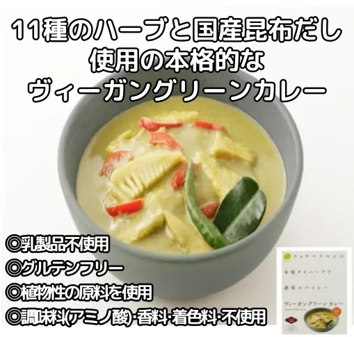 本場タイハーブで 濃厚スパイシー ヴィーガングリーンカレー(1食分180g)<11種のハーブと国産昆布だしを使った本格タイカレー>◎植物性の原料を使用 ◎グルテンフリー ◎調味料(アミノ酸)・香料不使用 ◎乳製品不使用