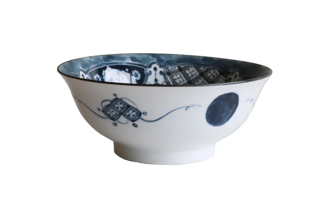 Japanese traditional patterns.~日本の伝統なる文様の一皿が魅了する。~ 「瓔珞」とは吉祥を表す絵柄。古代インドの上流階級の人々が身に着けた珠玉や貴金属を編んだ装身具で、それを用いた文様のことを瓔珞といいます。 日々の暮らしの中で何気なく目にしている染付のうつわは、和洋問わずどんな料理にも合うので大変重宝するアイテムです。縁起に良い絵柄でもあるので、使う人の心を豊かにしてくれそうです。 冷麺やラーメン、冷やし中華など定番の麺料理はもちろん、親子丼や牛丼、中華丼にかつ丼などどんぶりメニューにもぴったり。 それ以外にも、野菜炒めなどの副菜の盛り皿としてもお使いいただけます。