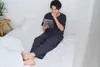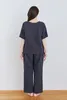 先行して展開していたルームパンツをご愛用の方々をはじめ、たくさんのご要望をいただいておりましたトップスが、ようやく発売となりました。 サラッとした着心地で、ふわふわの肌触りが地肌に気持ちよく、春夏のシーズンにぴったりです。 身幅と、袖丈、アームホールがやや大きめのつくりで、ざっくりとしたシルエットのデザインなので、体のラインを拾いません。 また、ネックホールは着脱時のストレスがない、ややゆったりめの仕様ですが、かがんだ姿勢でも開きすぎないつくりです。 着丈は(長袖に比べて)少し短いつくりになっています。 全工程日本製、ホルマリン検査済みで、敏感肌の方でも安心してお使いいただけます。 パジャマ、部屋着などルームウェアとして、そして、ちょっとそこまでお出かけするワンマイルウェアとして、くらしの中のいろんな場面で活躍してくれます。 部屋干しでも乾きやすいので、それほどたくさんの洗い替えも必要ありません。 いつもどおりのお洗濯方法で遠慮なく洗えます。 シワも気になりづらい生地なので、ぜひ気兼ねなくいろんなシーンでお使いください。 サイズはS、M、L、XLがあります。男女兼用となっています。身長やお好みのサイズ感に合わせてお選びください。