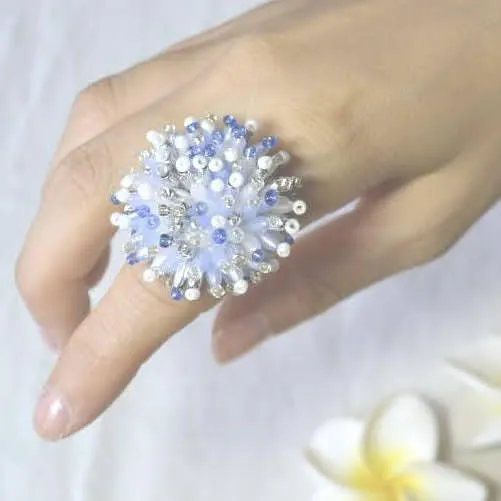 ビーズイソギンチャクリング ブルーMIX