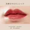 〈使用方法〉 チップに適量をとり容器の口もとで量を調整し、唇になじませるように塗布します。 〈ご使用上の注意〉 ●コチニール(カルミン)を使用してます。唇に異常があらわれた時はご使用をおやめください。●唇に異常が生じていないかよく注意して使用してください。化粧品が唇に合わないとき即ち次のような場合には、使用を中止してください。そのまま化粧品類の使用を続けますと、症状を悪化させることがありますので、皮膚科専門医等にご相談されることをおすすめします。(1)使用中、赤み、はれ、かゆみ、刺激、色抜け(白斑等)や黒ずみ等の異常があらわれた場合(2)使用した唇に、直射日光が当たって上記のような異常があらわれた場合 ●傷やはれもの、しっしん等、異常のある部位にはお使いにならないでください。 〈保管及び取り扱い上の注意〉 ●ご使用後は容器をしっかりと閉めてください。 ●容器の口もとや周りにリップが付着した場合はティッシュ等でふきとり清潔にしてお使いください。 ●使用後は必ずしっかりと蓋をしめてください。 ●極端に高温または低温の場所、直射日光の当たる場所には保管しないでください。 ●乳幼児の手の届かないところに保管してください。