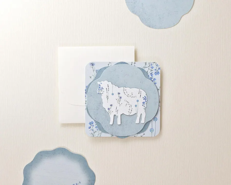 どうぶつを象ったメッセージカードです。 重ねた形が可愛いダイカットで仕上げました。 花で彩られたカードは、華やかな雰囲気なのでお祝いやプレゼントに添えたりちょっとしたお手紙のアクセントにもおすすめ。 お渡し用のケースには柔らかな風合いのオフホワイトの紙を使用しています。 ◆バリエーションは下記の4種類ございます 《モチーフ》 ・うさぎ×ピンクの花たち ・猫×黄色い花たち ・ひつじ×ブルーの花たち ・小鳥×白い花たち 《内容量》カード4枚、ケース1枚、シール1枚 - - - FLOWELLTEA〔フラウェルティー〕シリーズ - - - 「花を添えて」をコンセプトに、大切な人にさりげなく花を添えて贈るようなシーンをイメージしたシリーズです。 女性や花好きの方に人気があり、ブライダルシーンや贈り物に添える場面でご活用いただいています。 - - - - - - - - - - - - - - - - - - - - - - - - - - - - - - - - - - - - -