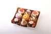 フラワーペースト(国内製造)、ナチュラルチーズ、チョコレート、小麦粉、鶏卵、マーガリン、乳等を主要原料とする食品、いちご、大福、アプリコット、紅芋、ブルーベリー、レモン、ラズベリー、クランベリー、砂糖、マカダミアナッツ、水あめ、ピスタチオ、抹茶/増粘剤(加工澱粉)、ゲル化剤(ペクチン)、グリシン、香料、保存料(ソルビン酸、ソルビン酸K)、pH調整剤、酸味料、乳化剤、安定剤(ローカスト、メタリン酸Na)、着色料(ココア、紅花赤、二酸化チタン、黄4、黄5、赤3、赤40)、(一部に小麦・卵・乳成分・大豆・マカダミアナッツを含む)