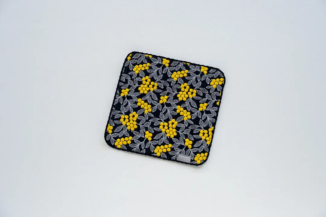 エンブロイダリー 刺繍レースのタオルハンカチ ミモザ