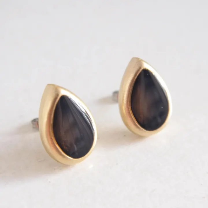 \人気アイテムが再入荷/クラシカルなヴィンテージ感をまとうピアス /ブラックエナメルツユ型ピアス*イヤリングタイプあり【Modern】※BOX付き
