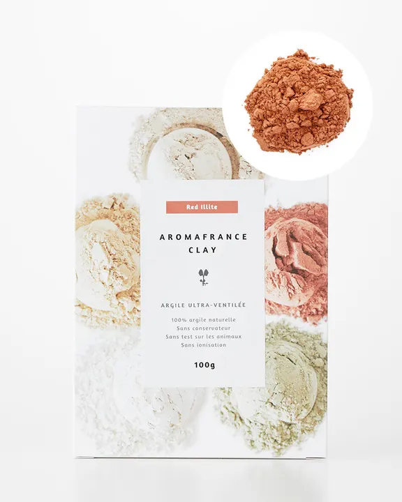 アロマフランス クレイ レッドイライト – 巡りと温めをサポート。寒い季節のケアに最適なレッドクレイ – 【商品概要】 レッドイライトは、フランス中南部サンポリアン村で採掘された天然クレイで、温めケアに適した深みのある赤いクレイです。 冷えやすい季節のフットバスやクレイバス、ボディパックにおすすめ。 足元からじんわりと温まり、肌のコンディションを整える自然療法として広く支持されています。 【特徴と効果】 寒い季節にうれしい温感ケア向けクレイ 足元からの巡りをサポートし、全身のポカポカ感を引き出す 健康肌〜乾燥肌向けのボディケア用に適応 首から上への使用は非推奨(刺激性があるため) 鉱物構成:イライト約75% / カオリナイト約25% 入浴料としての活用も人気 【使用例・メニュー展開】 クレイバス(全身浴の入浴剤として) フットバス(足浴・足の冷え対策) ボディパック(乾燥肌・巡りケアに) ※フェイシャルや首から上へのご使用はお控えください 【使用方法(参考配合)】 用途 クレイ50gに対する水分量 パック・湿布 水32.5g(約65%) 洗顔・包帯包覆法など 水40g(約80%) ※顔まわりには使用不可。水は精製水またはアロマフランスのハーブウォーター推奨。 【製品スペック】 肌タイプ:健康肌・乾燥肌 ヘア・頭皮:※使用不可(首から上は非対応) 見た目:深みのある赤色パウダー pH値:8〜9 産地:フランス・サンポリアン村 鉱物構成:イライト約75% / カオリナイト約25% 【ご使用時の注意点】 お肌に合わない時、次のような場合にはすぐに使用を中止して専門医にご相談されることをお勧めします。 ・使用中あるいは使用後、痛み、剌激等の異常が現れた場合 ・お肌に直射日光があたって上記のような異常が現れた場合 ・肌に直接つけたまま、日光にあたると、まれにかぶれたりシミになることがありますのでご注意下さい。 ・アクセサリー等に付着しますと変色することがありますのでご注意下さい。 ・薄い布地や白、淡い色の衣服にはシミになることがあリますので本品が直接衣服につかないようにご注意下さい。 ※顔や頭皮、首から上への使用は避けてください。 【保管について】 使用後はしっかり封をし、高温多湿を避けて保管してください。 ペーストにした場合はその日のうちに使用。保存する場合は冷蔵庫で保管し、2〜3日以内に使い切ってください。 乳幼児の手の届かない場所で保管してください。 【使用期限】 使用期限:製造日より3年(開封後はなるべく早めに使用) 【全成分】 イライト、カオリン 【ご購入後の注意事項】 アロマフランスの商品をご利用いただき、ありがとうございます。 当ブランドでは、品質管理のため Amazon・楽天市場などのECモールでの再販売はご遠慮いただいております。 皆さまに安心して商品をお届けするためのお願いとなりますので、 ご理解とご協力をいただけますと幸いです。