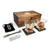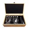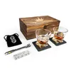 ツイストグラス:9.5x8.5cm、426g クリスタル風グラス:7.5x8㎝、338g ガラスボール:直径3cm、30g コースター:10x10x0.5㎝, 110ℊ 専用ボックス:29.1x17x12cm, 500g