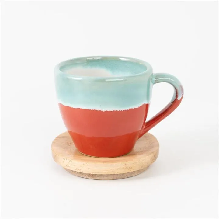 インドネシアの職人が手がけたラテシリーズは、カラフルで可愛いデザインながら機能性を兼ね備えたハンドメイド陶器です。(チーク材コースターとスプーン付き) ✔️電子レンジ・食洗機対応 ✔️高品質なインドネシア製陶器 ✔️日常使いに最適なスタイリッシュなデザイン