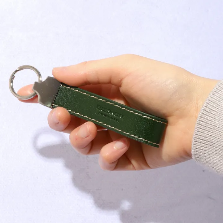 【 イタリアンレザーを贅沢に使用 】 「毎日手に触れるキーホルダーだから良い素材のモノを使って欲しい」 そんな想いから贅沢にイタリア産イタリアンレザーを100%使用しました。 イタリアンレザーは、傷や汚れに強い素材なので、毎日ハードな使用にも耐える事ができます。 使えば使うほど艶が出て味わいが深くなります。また、多少の傷がついても擦ってあげると傷は目立たなく特性もあります。 【 落下防止で安心 】 ストラップ型のキーホルダーは、鞄の中でもすぐに見つかるデザインです。また、イタリアンレザーが手に馴染みやすく、ループに指を通すことで、安心して大切な鍵を持ち運ぶことができます(リング部分は錆びにくい素材を採用しています) 【 大切な人へのギフトにも 】 なかなか自分では買わない贅沢素材のキーホルダーは、ギフトやプレゼントにぴったりです。就活、就職祝い、昇進祝い、クリスマス、誕生日、父の日、敬老の日、結婚式、ビジネスなど、様々なシーンの贈り物に最適です。