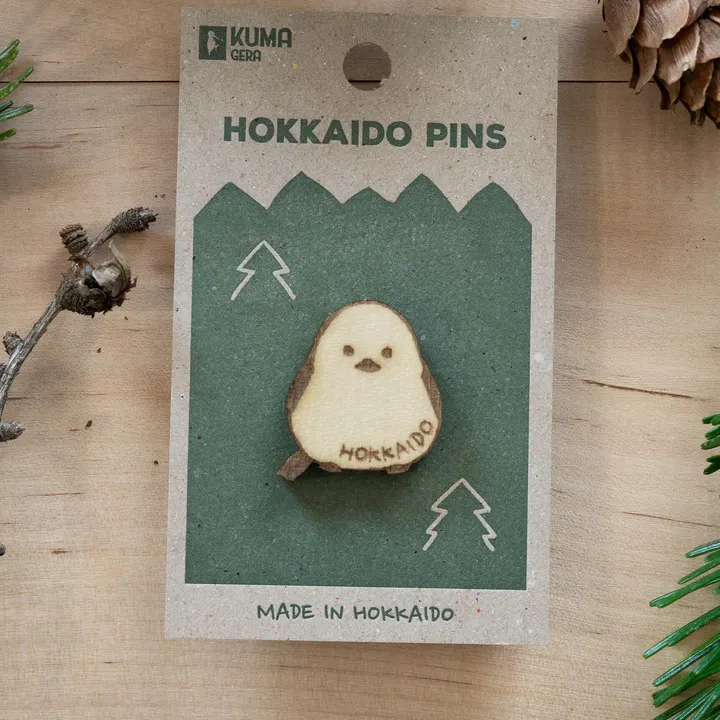北海道をテーマにした木製ピンバッジ。北海道産の木材を使用し、地元でデザインから製造までやっているMade in Hokkaido商品。北海道に実在する動物たちなどが主なデザインになっております。みんなが大好きなクマやシマエナガはもちろん、知る人ぞ知るちょっとニッチな北海道の動物もいます。お店を華やかに彩るにはぴったりなサイズ感とデザインになっております。