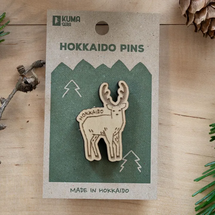 【HOKKAIDO PINS】北海道の木製ピンバッジ 蝦夷シカ 木製ピンバッジ