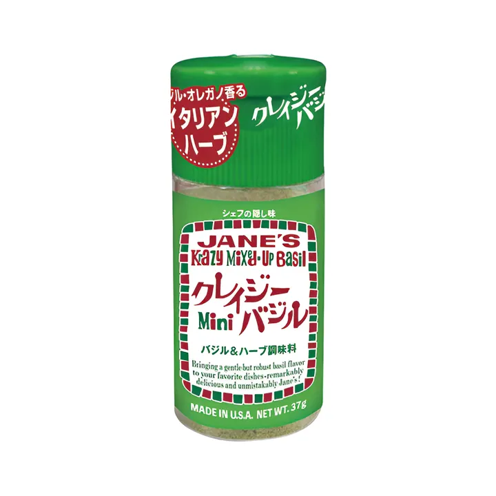 トマト料理はもちろん、スープ、サラダ、パスタ。バジルやオレガノ、タイムなどイタリア料理で人気のハーブをブレンドした、爽やかな味わい。ミニサイズはお試し用や持ち運びにぴったりです! 【JANE'S】(ジェーン) シーズニングソルトの代名詞! 西部のレストランにはもちろん、家庭料理にも欠かせない岩塩とハーブのスパイス調味料。 岩塩ならではの旨味とハーブを絶妙にブレンドしたクレイジーソルトは、どんなお料理にもひと振りでたちまち一流シェフの味に変えてしまう万能調味料です。 肉料理、魚料理、卵料理、サラダのほか、バーベキューなどのアウトドアクッキングでも