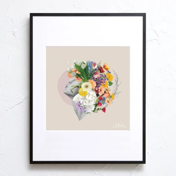 【現代アートポスター】女性 花 シンプル 写真 おしゃれコラージュ A4(S) フレームセット:黒 29.4×38.4cm