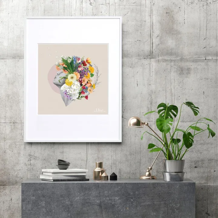 【現代アートポスター】女性 花 シンプル 写真 おしゃれコラージュ A2(L) フレームセット:白 55.1×73.3cm
