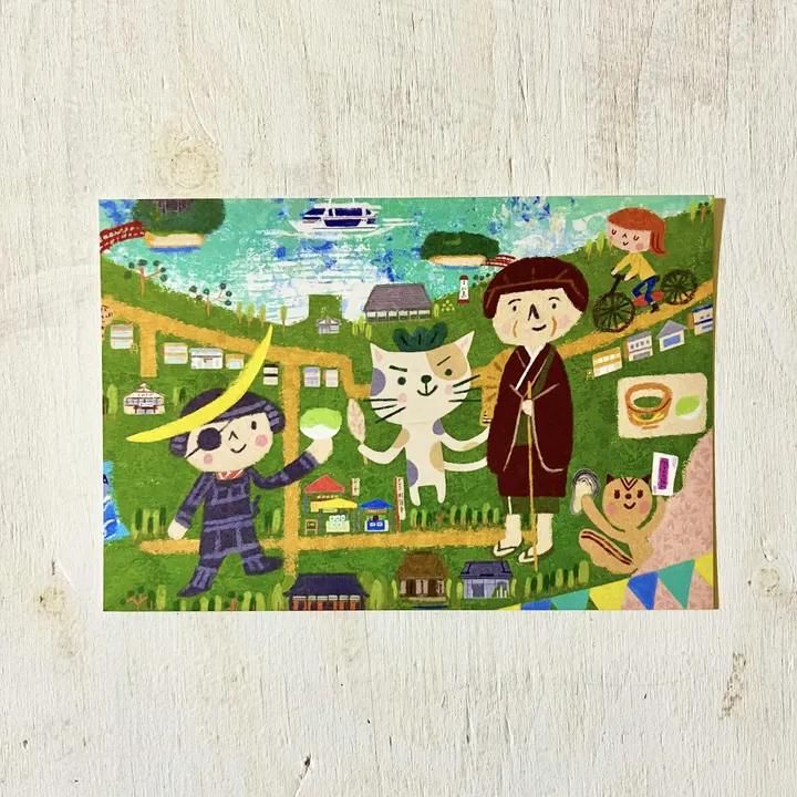 松島絵柄の ポストカード。 額に入れて飾っても楽しめます!! 松島(宮城県)は、260余りの島々が浮かぶ日本三景の一つで、 その絶景で知られる風光明媚な観光地。 松島の海岸通りをベースに、政宗、松尾芭蕉と 松島イメージのねこちゃんを入れた絵柄のポストカード。 バリエーションがあります。 横150mm×縦100m 上質紙 オフセット印刷 *PCモニターやスマホ画面と色が違って見えることがありますので、 ご了承お願いいたします。