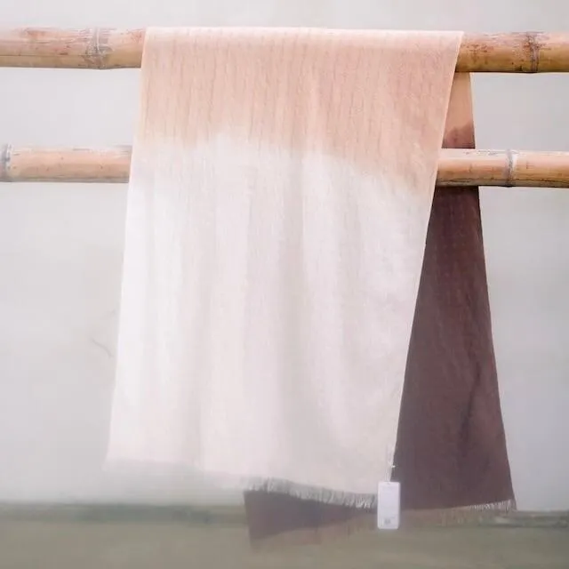 Fabric|繊維:Handwoven Eri silk blended with Tencel TM(シルク30%、テンセル70%) Dyeing|染色:Mahogany Bark, Indigofera Leaves(マホガニー樹皮、インディゴ染色)