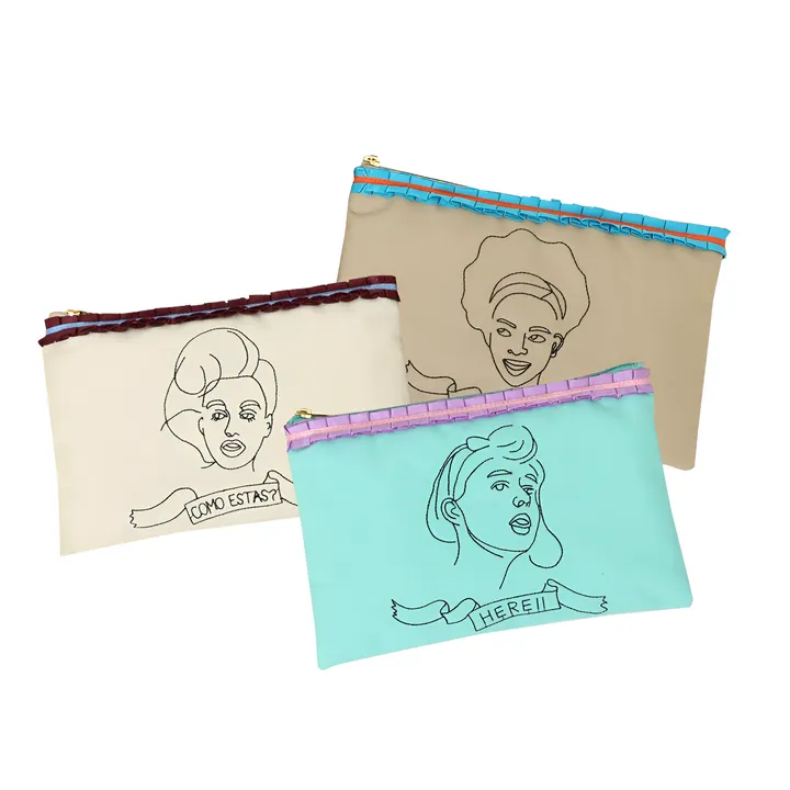 Bigポーチに比べ小ぶりなマルチポーチは化粧品を入れたり、アクセサリーやピルケースなど使い方は貴方次第。 Faceシリーズは、アメリカ(サックス)・ブラジル(ベージュ)・スペイン(アイボリー)とカラーごとに違った国の女性をイメージしたスパイスの効いた個性的なデザイン。 あなたのお気に入りの国や、パーソナリティに近いイメージの国の女性が描かれたデザインをライン使いする楽しさも!