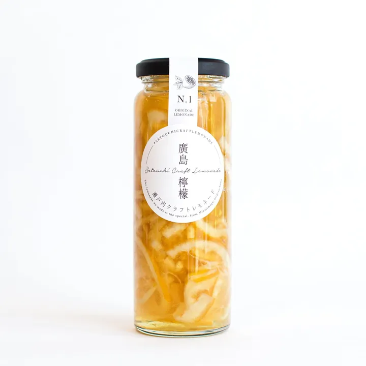 「食べる」レモネード。 【瀬戸内クラフトレモネード】の瓶詰め。(5杯分) 大崎上島下島産レモンを使用した世界遺産の玄関「宮島口」で作るレモネード 1週間熟成/砂糖5種と檸檬のみ/無加水/保存料フリー こだわり抜いた広島の他にないハンドメイドレモネードです。 果汁の5~10倍の栄養があるとも言われている果皮をまそのままお召し上がり頂けます。 とけるようにやさしい特別なレモン体験を演出、お湯や炭酸、ウイスキー、白ワインなどはもちろんアイス、ヨーグルトにも。 ◆瀬戸内ブランド登録商品◆ 原材料はレモンに砂糖5種のみ。保存料などの添加物は不使用。余計なものは一切なし。 果汁の5倍以上の栄養素が詰まった「生レモンピール」入り。 使用する砂糖は徳島の阿波和三盆糖や腸内環境を整えGI値の低い甜菜糖やきび砂糖など5種をブレンド。 そのまま食べたりするのはもちろん、他にもたくさんお楽しみいただけます。 【おすすめの楽しみ方】 ・シロップと果実をソーダやお湯、お茶などに加えてお楽しみいただけます。(5杯分目安) ・アルコールにもおすすめです。ハイボールは特にご好評いただいております。 ・ケーキなどにも。レアチーズケーキやガトーショコラに加えていただくととても大人な雰囲気をお楽しみいただけます。 広島名産のお土産品、お取り寄せ品として。 ※ラベルは1枚目の写真になります。 ※写真に写っている1本用ギフトボックスは別売り、オプション品です。 賞味期限は製造日より1年程度です。商品背面の品質表示をよくお読みの上保管ください。 ※弊社では商品案内のリーフレット、飲み方のレシピ、POP印刷データをご提供しております。 ご希望の方はお気軽にご連絡くださいませ。