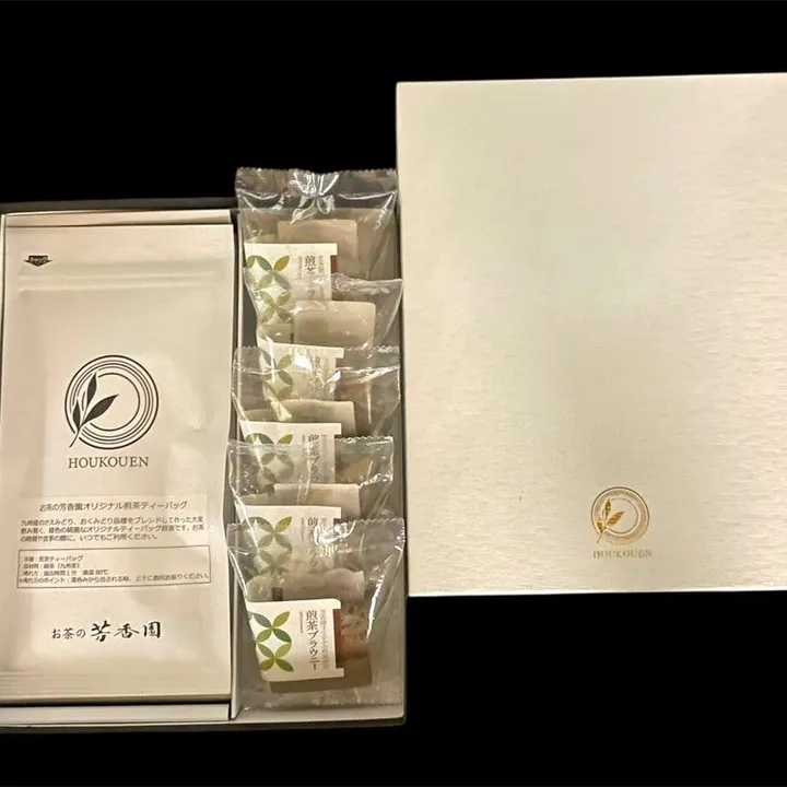 大人気の九州産煎茶ティーバッグと、テレビにも紹介された八女煎茶ブラウニーをギフトセットにしました。ギフト箱にもこだわり、芳香園のロゴマークが金色の箔押しで飾られており非常に高級感があります。 【煎茶ティーバッグ】 日本にわずか39名しかいない日本茶のプロフェッショナル、「日本茶鑑定士」のお力添えのもとで旨味、甘み、コクをバランス良くブレンドして作った大変飲みやすく、緑色の綺麗なオリジナルティーバッグ煎茶です。 お茶の時間やお食事の際に、いつでもお飲みください。皆様に豊かで愉しい心温まるお茶時間をお届けします。 【八女煎茶ブラウニー】 星の数ほどの茶葉の中から最適を厳選し、じっくりと丁寧に淹れた煎茶を極上のスイーツに。日本茶の深みを知りつくした専門店がこだわり抜いて作り上げました。ほろ苦く上品な甘み、後をひくうまみ。 煎茶ならではの清々しい香りと味わいを生かした、どこかほっとするようなおいしさを、くつろぎのひとときにお愉しみください。