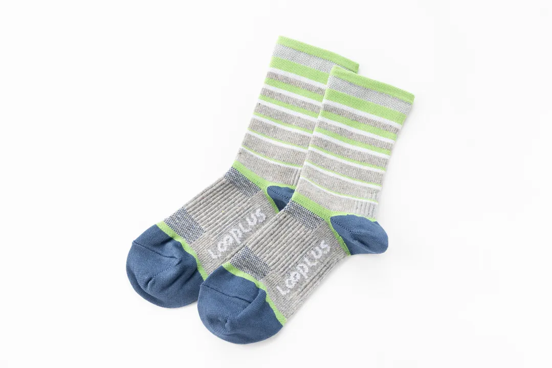 【自転車専用】Looplus(ループラス)アップサイクル自転車ボーダーソックス(ライトグリーン×ホワイト) Sサイズ(23-25cm)