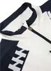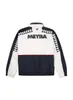 大胆に配したメイバトラックテープとブランドロゴがかっこいいバイカラージャケット。 胸元のドローコードやダブルジップなどデザインと実用性を兼ね備えたアイテム