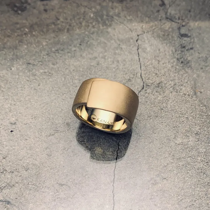 素材 SilverColor : platinumcoating(Silver925) GoldColor: K18 coating (Silver925) サイズ 【リング幅 / Ring width】約10mm(about10mm) <サイズ / Size > 9〜25号 / J〜X それ以外のサイズはお問い合わせください その他商品説明 帯の中でも格式の高い帯として位置付けられている 袋帯を表現した指飾り。 シンプルなシルエットに先端に角度をつけることで 帯の躍動感を表したデザイン。 和な装いにはもちろん、カジュアルな装いや モード系ファッションとの相性も良いです。 ご発送について ご注文をいただいてからご指定のサイズにて製作致します。 製作からご発送まで2週間〜1ヶ月ほどお時間を頂いております。予めご了承ください。