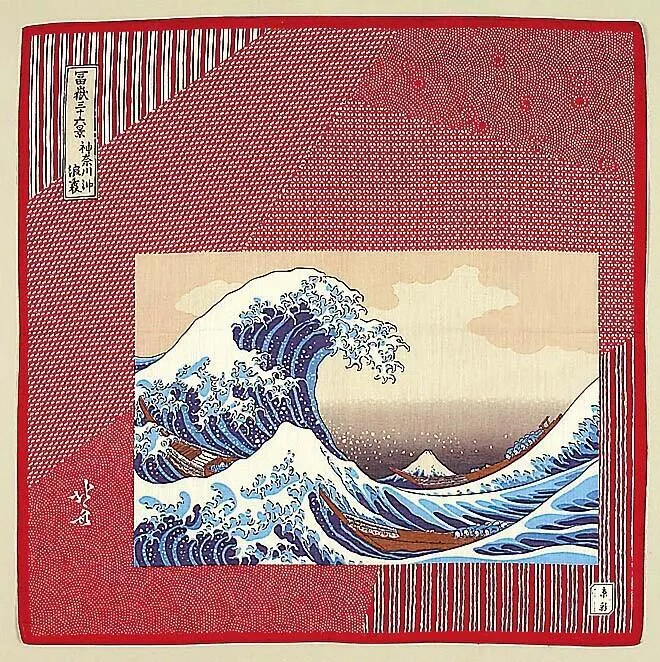 ハンカチ 京彩 北斎の浮世絵 北斎 神奈川沖浪裏 (コピー) アカ