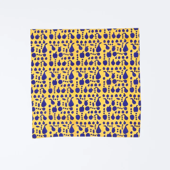 55cm×55cm┃フルーツが散りばめられた ブロックプリントのハンカチ MT(マスタード)