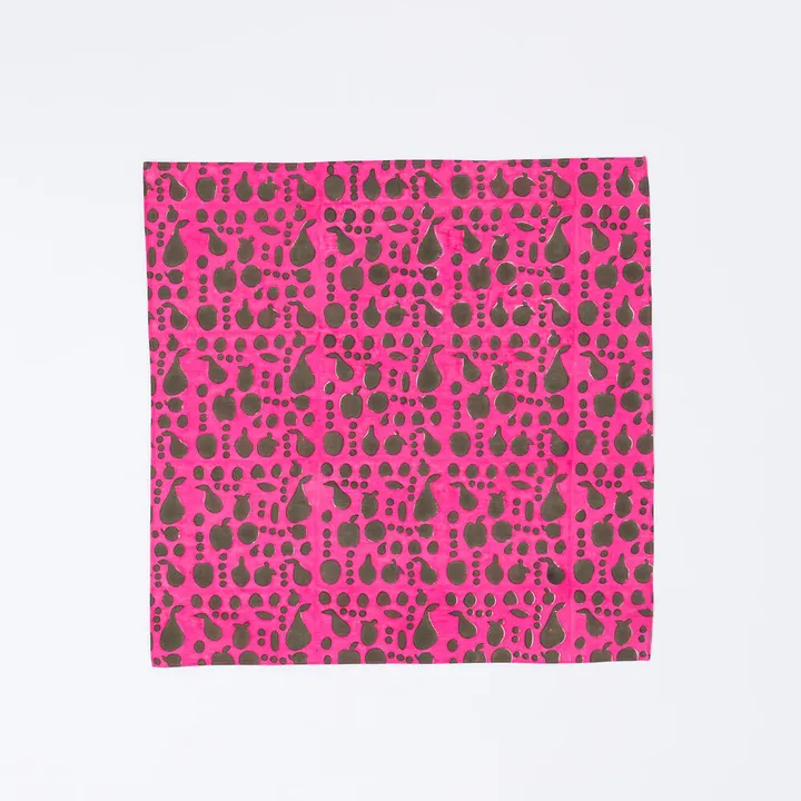 55cm×55cm┃フルーツが散りばめられた ブロックプリントのハンカチ PK(ピンク)