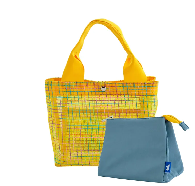 見た目に涼しげなメッシュ素材を使用した2WAYトートバッグ。 夏の日差しに負けないプレイフルカラーの組み合わせがポイントです。 程よい透け感はポーチを使わず、あえて中身を“魅せる”のも◎ 水に強いメッシュなのでアウトドアにもおすすめです。 付属のポーチは内側がアルミ蒸着シートの保冷仕様、たっぷりマチで中身がしっかり安定します。 保冷剤を収納できる内ポケット付き。 メッシュトートと合わせ使いすれば、保冷機能のついた夏バッグ、またお弁当や飲み物を入れればランチバッグにもなります。 気分↑↑でお出かけしましょう!