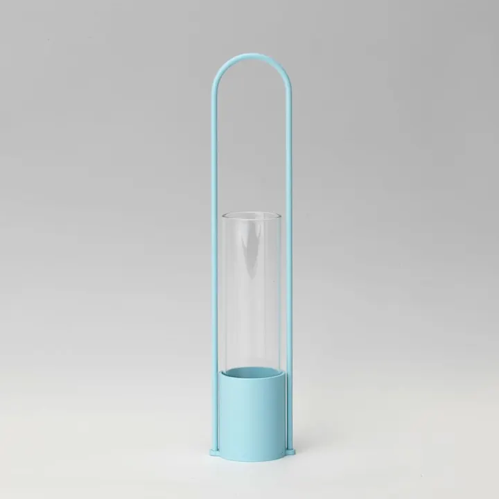 一輪挿すだけで美しいオブジェになるスチールパイプ花器。 ミニミニブーケが収まる小さめサイズながら、空間にさり気ない彩りのアクセントを加えます。 フレームハンドルがあるので、吊るして使うこともOK。アクセサリーやフレグランスを飾るなど、工夫次第でさまざまな使い方を楽しめます。 大切な人やご友人などへのプレゼントにおすすめです。 サイズ:(約) 幅45 × 奥行34 × 高さ203mm 重 量:(約) 127g 材 質:[本体] スチール(アクリル塗装)[ 瓶 ] ガラス 生産国:日本