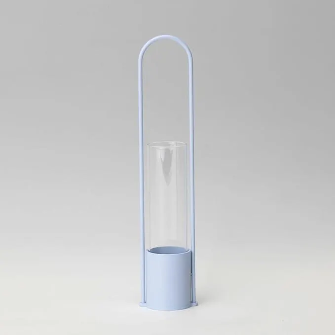 一輪挿すだけで美しいオブジェになるスチールパイプ花器。 ミニミニブーケが収まる小さめサイズながら、空間にさり気ない彩りのアクセントを加えます。 フレームハンドルがあるので、吊るして使うこともOK。アクセサリーやフレグランスを飾るなど、工夫次第でさまざまな使い方を楽しめます。 大切な人やご友人などへのプレゼントにおすすめです。 サイズ:(約) 幅45 × 奥行34 × 高さ203mm 重 量:(約) 127g 材 質:[本体] スチール(アクリル塗装)[ 瓶 ] ガラス 生産国:日本