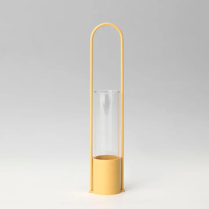 一輪挿すだけで美しいオブジェになるスチールパイプ花器。 ミニミニブーケが収まる小さめサイズながら、空間にさり気ない彩りのアクセントを加えます。 フレームハンドルがあるので、吊るして使うこともOK。アクセサリーやフレグランスを飾るなど、工夫次第でさまざまな使い方を楽しめます。 大切な人やご友人などへのプレゼントにおすすめです。 サイズ:(約) 幅45 × 奥行34 × 高さ203mm 重 量:(約) 127g 材 質:[本体] スチール(アクリル塗装)[ 瓶 ] ガラス 生産国:日本