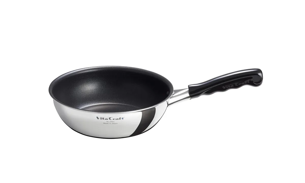 ●本体は熱効率に優れたステンレス+アルミの全面2層構造。円盤を回転させながら成型するスピニング加工により側面を薄く仕上げることで、軽量化を実現しています。●POLYGOシリーズ最高級グレード「マキシ プリムス」を採用。こびりつき・焦げつきを防ぎ、お手入れも簡単。耐摩耗テストは200万回をクリア。PFOAフリーで安心です。●持ち手の部分は、ビタクラフトの定番ステンレス鍋の片手ハンドルと同じデザイン。手にぴったりなじんで使いやすく、ストレスを感じません。●本体の成型から研磨、内面のコーティングや部品の取り付け、梱包に至るまで、全製造工程を日本国内で一貫して行っています。