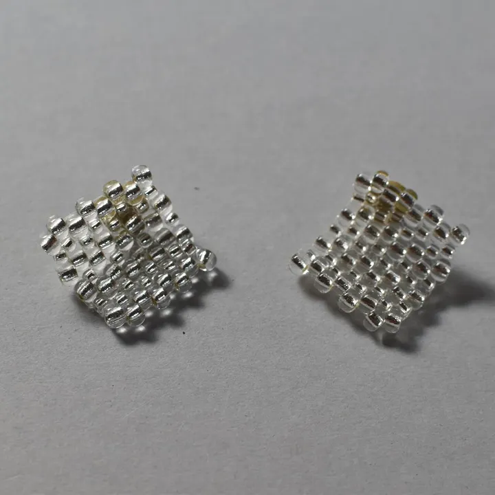 液体が空気を包んでできた玉 気体が液体または個体のなかに閉じこまれた状態 ある一定の時間が過ぎると その泡は消失してしまう 液体がおなじ粘度でも温度が高い方が気泡径が大きくなります 環境に左右されながらうごめく 命を宿しているかのような 美しい球体のあつまり その瞬間を覚えておかないと 彼らはいつの間にか過ぎ去ってしまう --- 耳飾りは5サイズあり、使用しているビーズの組み合わせが2種類あります 細かい目(泡A、C)のものと粗い目(泡B、D、E)のもの お好みの印象のものをお選びください material SILVER925(ピアス金具)、ガラスビーズ、フェルト、本革、テグス size 約35x35mm weight 約3.57g *CACICOの商品は全て1点1点制作しているため、個体差があり、商品写真と差がある場合がございます。ご了承の上、ご購入ください。 *金属アレルギーの方はご使用をお控えください *受注生産のため、ご注文確定後1週間〜10日以内に商品を発送いたします