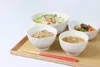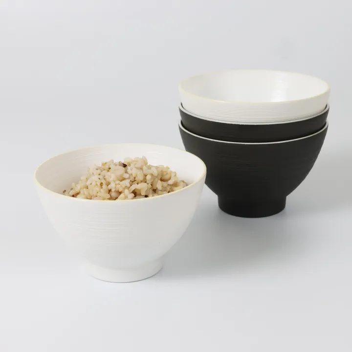 ・職人による熟練の技術 飯椀、汁椀、ボウルの塗装は熟練の職人の手によって行なわれています。 表面の何層にも重ねた塗装や内側の撥水加工はムラがでないように1つ1つ丁寧に塗っています。 樹脂製でありながら陶器と思わせるような高級感ある仕上がりとなっています。 ・安全・安心・清潔・抗菌 内側には、撥水加工で汚れがつき難く、更に本体全体に SIAA 認可の抗菌加工が施されており、より安全と清潔な仕様に。 また、本体が樹脂製の為、軽くて割れにくく、 外側はマットな“ざらつき”のある質感にする事で、 持った時に滑りにくい仕様になっており、 子供やお年寄りの方にも、安心してお使いいただけます。 ・日常使いに便利な機能 matore bowl シリーズの4 種類は、 抗菌・滑り止め・撥水加工に 電子レンジと食洗機にも対応しており、日常使いに便利な機能が 豊富なシリーズとなっております。 ・様々な食生活に対応 商品は飯椀、汁椀、ボウルM とL の4 種に、カラーはホワイトとブラックの2種を用意しています。 和食や洋食など、様々な食生活やリビングの雰囲気に合わせて選ぶことができます。 表面のマットな質感は陶器を思わせるような仕上がりで、上品さと高級感を与え料理をより一層引き立たせてくれます。 飯碗や汁椀など種類はありますが、小ぶりが好みの方などは、汁椀をご飯茶碗に使ってもらうなど マルチな使い方も出来る商品となっております。 ・安全でおしゃれな日常をお届け 毎日使う食器として、より多くの機能を持たせることで、使うことの喜びや嬉しさを与え、 永く使用していただきたいと考えています。 飯椀、汁椀、ボウル全て合わせて使えば、食卓に上品さが加わり、料理の魅力を より一層引き出してくれます。 matore bowl シリーズは子供から年配の方まで安心してつかうことができる食器として みなさんにお届けします。 matore 由来:本体の艶の無い(matte) 質感と 高い塗装技術により生まれ変わる(reborn) ことから名づけられました。