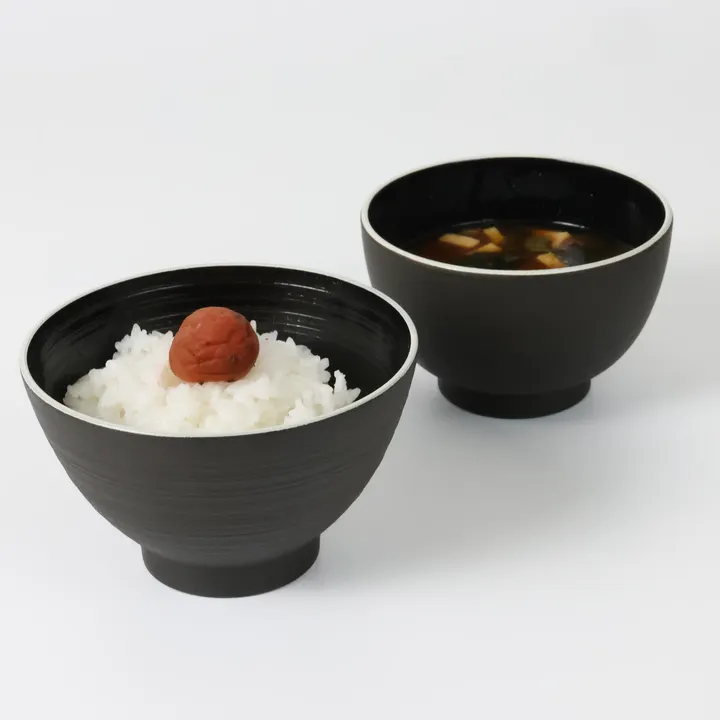 ・職人による熟練の技術 飯椀、汁椀、ボウルの塗装は熟練の職人の手によって行なわれています。 表面の何層にも重ねた塗装や内側の撥水加工はムラがでないように1つ1つ丁寧に塗っています。 樹脂製でありながら陶器と思わせるような高級感ある仕上がりとなっています。 ・安全・安心・清潔・抗菌 内側には、撥水加工で汚れがつき難く、更に本体全体に SIAA 認可の抗菌加工が施されており、より安全と清潔な仕様に。 また、本体が樹脂製の為、軽くて割れにくく、 外側はマットな“ざらつき”のある質感にする事で、 持った時に滑りにくい仕様になっており、 子供やお年寄りの方にも、安心してお使いいただけます。 ・日常使いに便利な機能 matore bowl シリーズの4 種類は、 抗菌・滑り止め・撥水加工に 電子レンジと食洗機にも対応しており、日常使いに便利な機能が 豊富なシリーズとなっております。 ・様々な食生活に対応 商品は飯椀、汁椀、ボウルM とL の4 種に、カラーはホワイトとブラックの2種を用意しています。 和食や洋食など、様々な食生活やリビングの雰囲気に合わせて選ぶことができます。 表面のマットな質感は陶器を思わせるような仕上がりで、上品さと高級感を与え料理をより一層引き立たせてくれます。 飯碗や汁椀など種類はありますが、小ぶりが好みの方などは、汁椀をご飯茶碗に使ってもらうなど マルチな使い方も出来る商品となっております。 ・安全でおしゃれな日常をお届け 毎日使う食器として、より多くの機能を持たせることで、使うことの喜びや嬉しさを与え、 永く使用していただきたいと考えています。 飯椀、汁椀、ボウル全て合わせて使えば、食卓に上品さが加わり、料理の魅力を より一層引き出してくれます。 matore bowl シリーズは子供から年配の方まで安心してつかうことができる食器として みなさんにお届けします。 matore 由来:本体の艶の無い(matte) 質感と 高い塗装技術により生まれ変わる(reborn) ことから名づけられました。