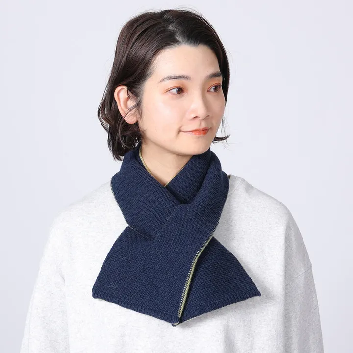 ベーシックカラーとアクセントカラーを組み合わせたリバーシブルのミニマフラー。 首元が寂しい時はアクセントカラーをメインに使えば、コーディネートのポイントになります。 リバーシブル仕様のため、すっきり仕上がるよう細い糸を使用していますが、ガーター編みのため、着用したときに、程よい膨らみが生まれ、スタイリングしやすくなっています。 素材の情報 生産過程で出る残り糸や不要になったウール衣類などの毛糸を紡ぎなおした、リサイクル素材を使用しています。廃棄物が削減でき、生産過程で必要な水やエネルギーの使用を抑え環境負荷を軽減できる地球に優しいニットです。 サイズ:幅15×長さ85cm ※編地の特性上、長さに多少の個体差あり 素材:ナイロン 50%、毛 47%、ポリエステル 3% 注意事項: この製品は、日焼け、汗や水に濡れた場合の摩擦により、他の物への色移りや変色する場合がありますのでご注意ください。素材の特性上、毛羽立ちやピリングが生じることがあります。また、水洗いにより縮み、色落ち、毛羽立ちなどが生じ、風合いが変わる事があります。洗濯の際は、ネットに入れて押し洗いし、他の物と一緒に洗わないでください。蛍光増白剤・漂白剤入りの洗剤は使用しないでください。長時間水に浸けておいたり、濡れたまま放置しないでください。タンブラー乾燥は避け、自然乾燥してください。 *リサイクル ウール