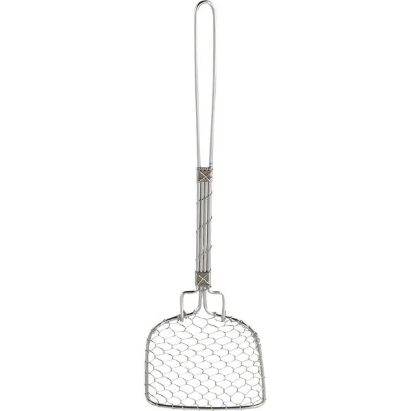 ステンレスのワイヤーを職人の手により編み上げています。持ち手も長く深さのある鍋でもお使い頂けます。
