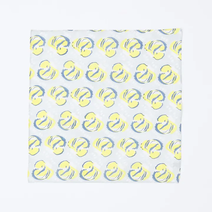 午後、湖のほとりで、おさんぽ ブロックプリントのハンカチ ポケットサイズ YL(イエロー)