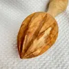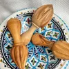 レモン絞るのに良し。オレンジ絞るのも良し。 お鍋には柚子・かぼすなど、柑橘類を絞るにはこの一本 丸いところで、ニンニクやスパイスもつぶせて、一石二鳥!! とても丁寧につくられた重厚感あるアイテムです。 上から押さえて回しながらの搾り器よりも、手に握って両方を回すことによって荷重が無駄なく、また手や腕に負担なく絞ることが出来ます。 *オリーブの木はとても硬く傷つきにくい特徴があります。 *木目も一つとして同じものはないので、それぞれに個性があります。1本のオリーブの木から削っています。 *地中海の恵みをたっぷり浴びたオリーブの木は、ゆっくりと成長するので大きな木になるには何百年とかかります。その為、木の密度は高くなり、硬く傷つきにくくなります。 色が変わってきたらオリーブオイルを塗ってください。長く使っていただける一品です。 *オリーブの木 特有の滑らかな形、木目の表情は大自然の恵みの力をそのまま残した生命力溢れる絶品です。これぞ北アフリカの大自然アート、長い年月の間、厳しい自然の中を何百年も生き抜き育った結果が表れています。 この作品には圧倒的な「見ごたえ」があります。目にするたびに喜びと元気が湧き出ることでしょう!!北アフリカではオリーブの木は1000年近くも生きる不死身「聖なる木」とされます。 *長い年月の間に厳しい自然と共に育った複雑な木目が特徴です。とても硬質な木質で、傷つきにくく表面は滑らかで手に吸い付くような素晴らしい感触です。 *天然木のためサイズ、木目や節、色合いなどが一点一点異なります。※天然素材のため、木目は画像のものとは異なります。ご了承くださいませ。またデザインが入荷時期により異なる場合がございます。様々なカタチのものをお楽しみいただければ幸いです。 *ギフト、お祝い、引き出物などにも人気があります。 *所有するだけで、天然木材の持つ風合いと手触り、一つとして同じ木目や色が存在しない、世界で唯一無二な存在感を満喫して頂けます。