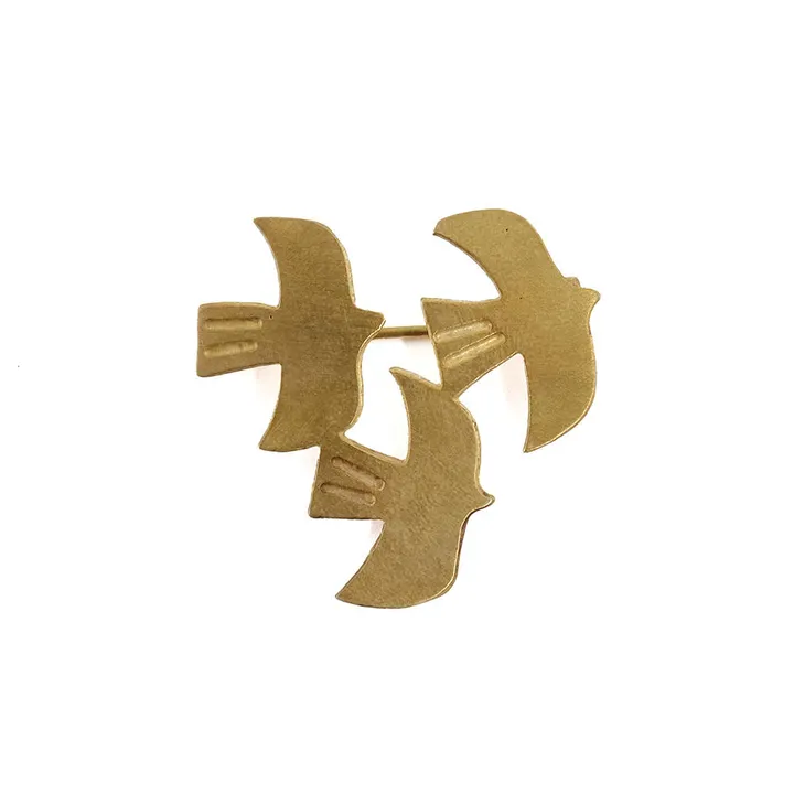 職人の手作りによるブラス(真鍮)のブローチ/ハンドメイド ハレの日 卒園 卒業 入園 入学 C羽ばたく鳥(約 幅3.5×高さ3.5cm)